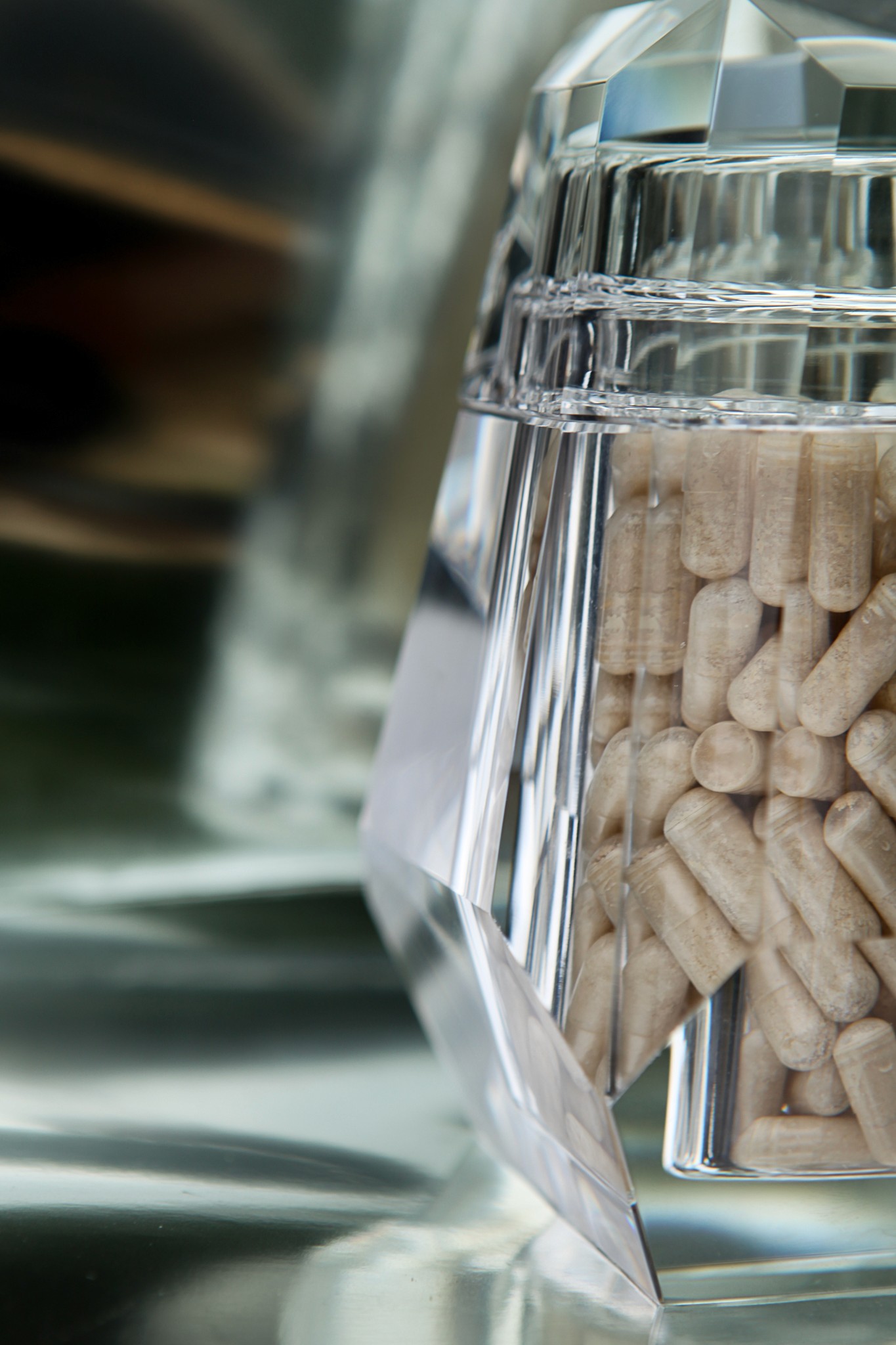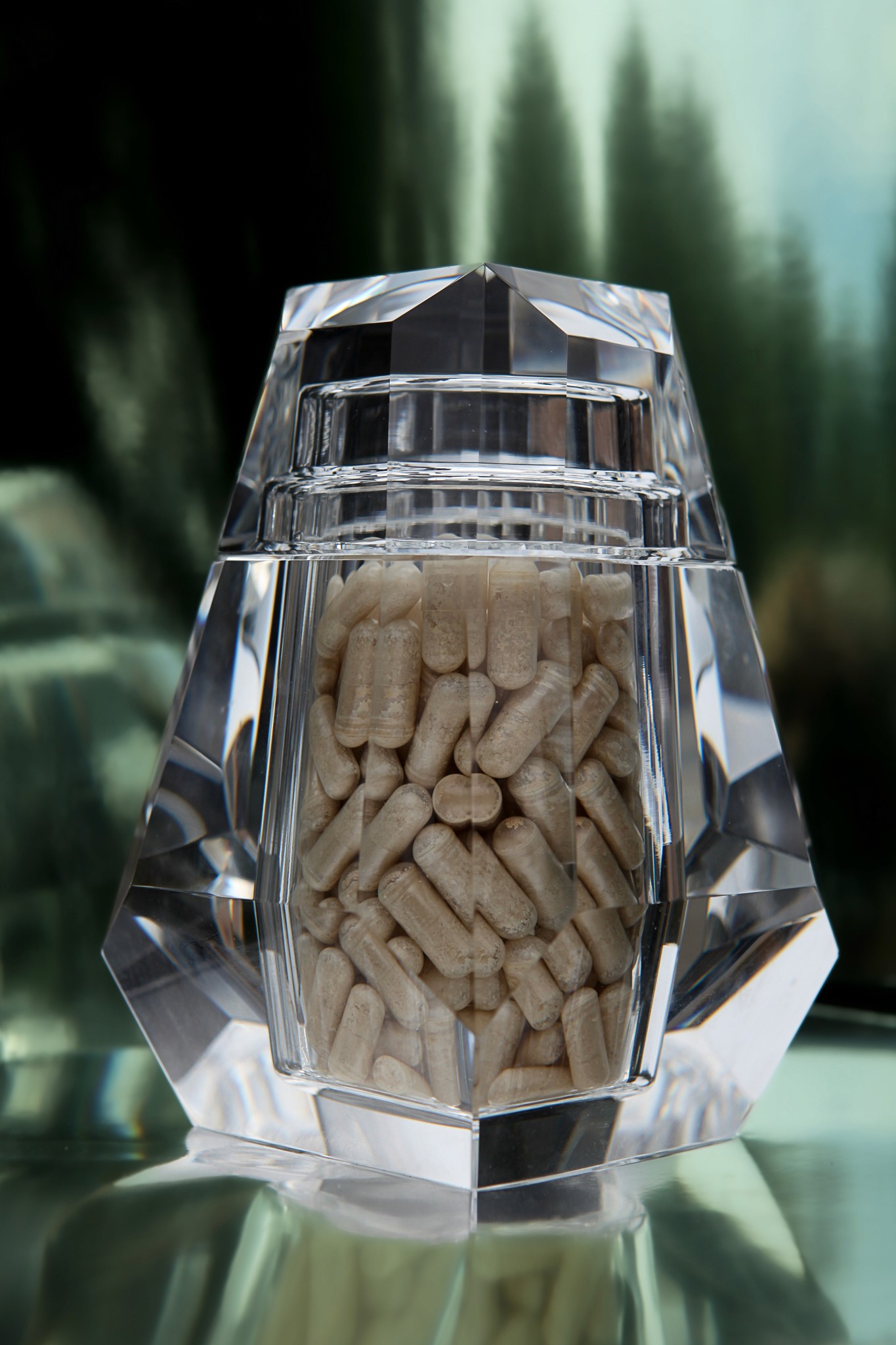 Our flagship supplement crafted into a food-grade, lead-free crystal container. Includes a 1-month supply (90 capsules) of our scientifically formulated mushroom beta-glucans, designed to support gut, immune, and cognitive health with unmatched purity and precision.